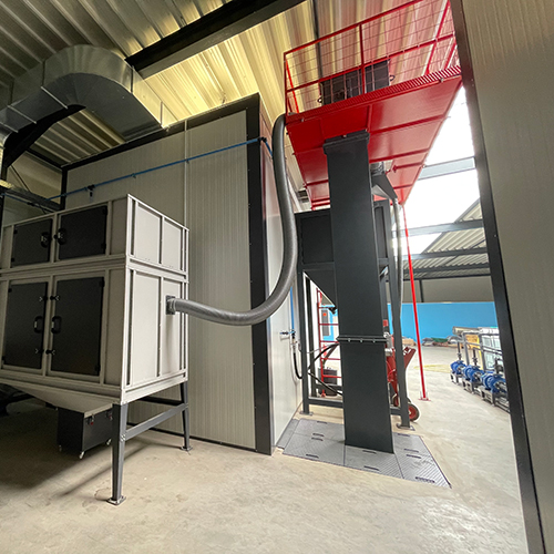 While the dust is removed from the system, the clean granule is collected in the stock silo.