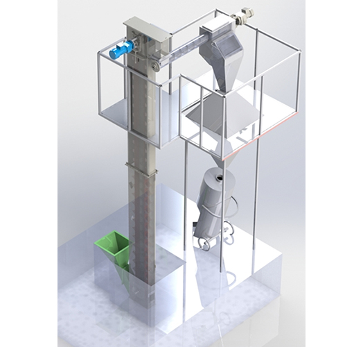 The elevator is used to transport the granule from the lower part of the main body to the separator silo.