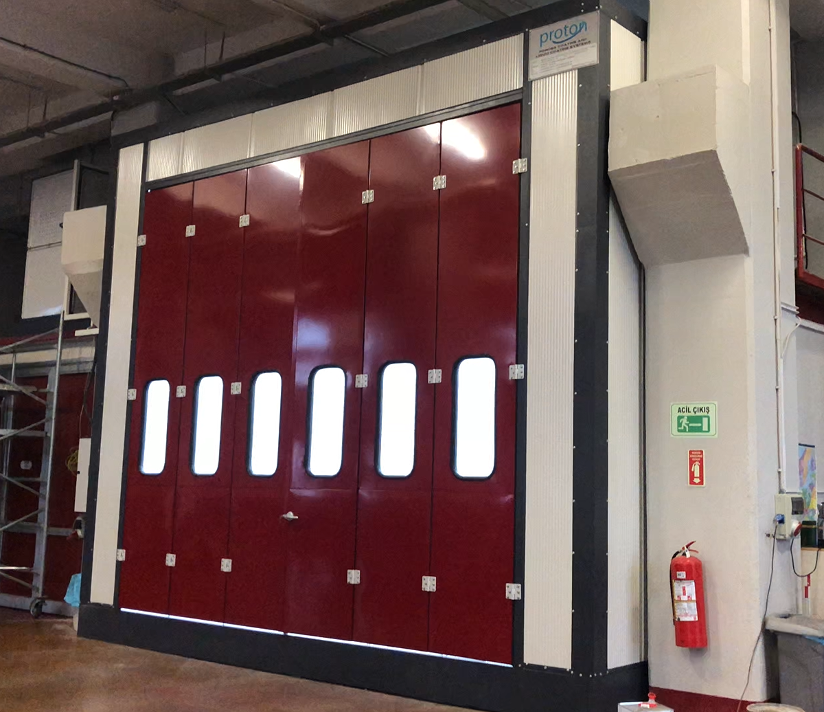 Our painting booths are designed according to your product dimensions. Our cabins, which provide gas, diesel or electric heating, operate in the logic of indirect heating. Thus, your paint quality and work safety are increased. A dust-free clean environment is provided with its superior insulation quality. Your work safety is ensured with ATEX certified exproof lighting and suction system. You can paint at superior quality with our booths with lighting, suction and heating calculations in European standards.