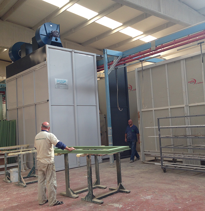 In Elboy Filterline Wet Paint Application Booths, environmental pollution is prevented by being applied accordion filtration system.