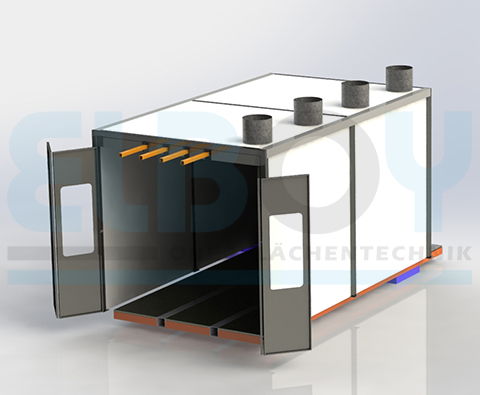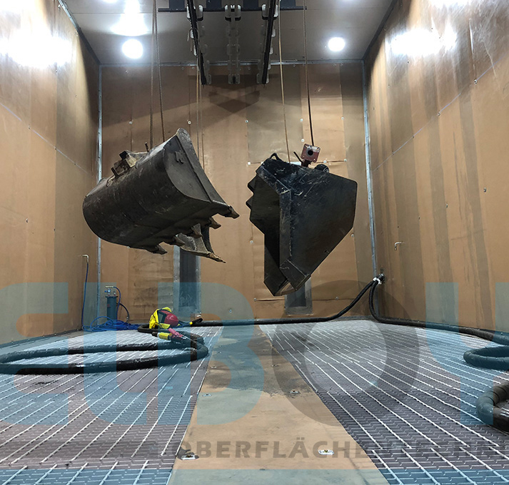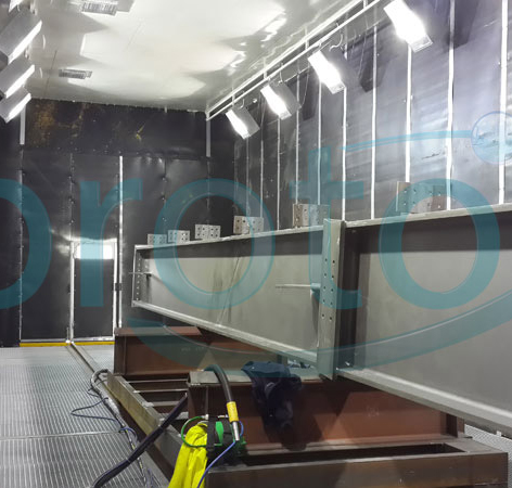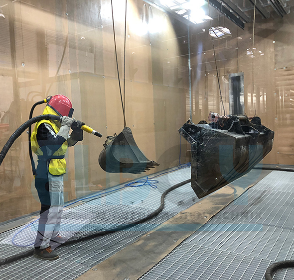 Sandblasting rooms are designed in accordance with European standards and safety norms.