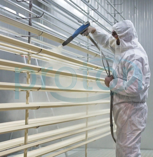It works on the principle of manual painting of products suspended on a rail or placed on a trolley.It is integrated into manual painting systems. Suitable for bar transfer systems.Product entry options are available with top hanging or bottom trolley.