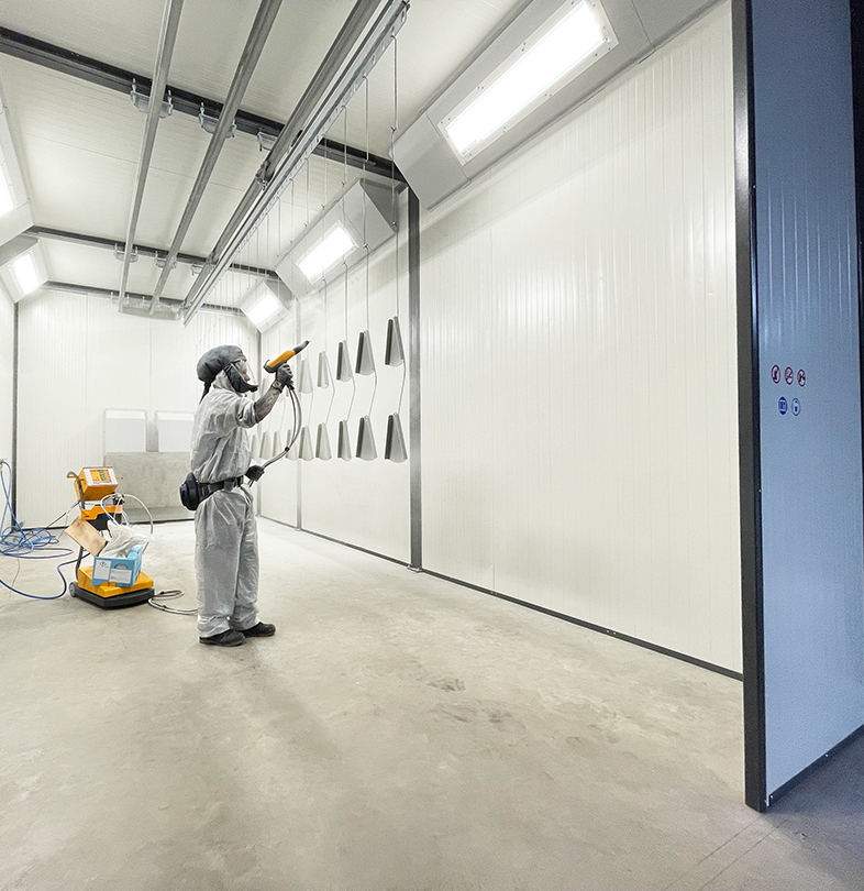 ROOMLINE powder coating booths are designed for paint recycling and prevention of environmental pollution during the powder coating process of large parts.