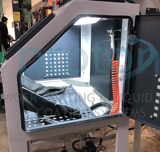 - Filtration: A powerful air filtration system helps keep the air clean so you can see what you are doing while working in your blast cabinet.