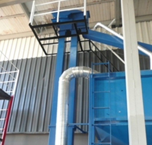 The elevator is used to transport the granule from the lower part of the main body to the separator silo.