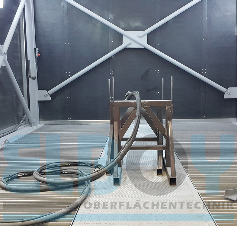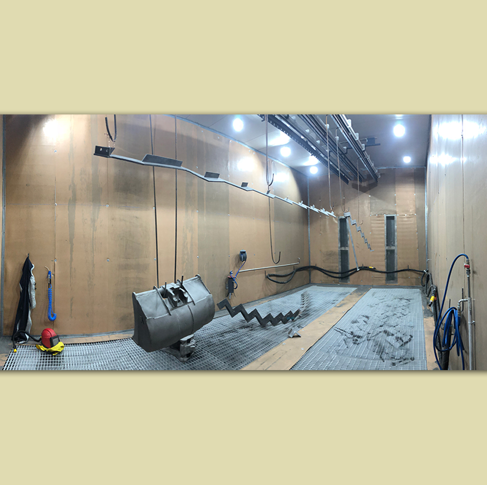 Sandblasting rooms are designed in accordance with European standards and safety norms.
