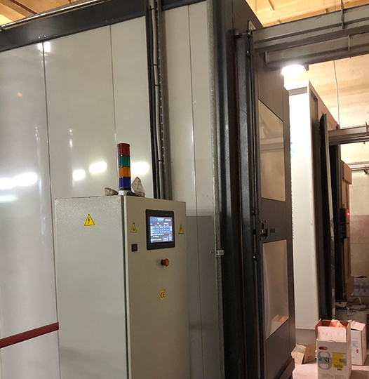 The cabin interior consists of sandwich panels 304 stainless steel and the exterior is made of powder coated sheetiron.