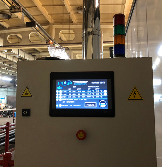 The heating inside the tank is provided by gas heat exchangers. The processes can be monitored, times and temperatures of all processes can be adjusted via the Plc touchscreen.