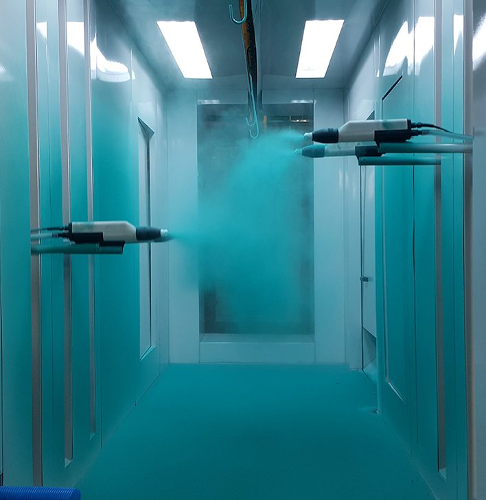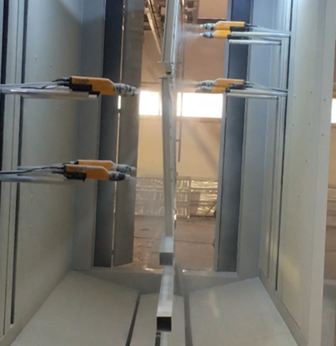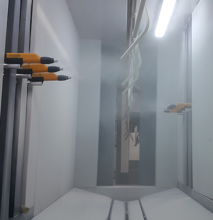 The curtain system, which provides a seal between the cascade and the paint passage, minimizes the risk of malfunction by preventing the cascade from coming into contact with the paint.