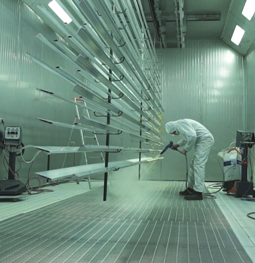 ROOMLINE powder coating booths are designed for paint recycling and prevention of environmental pollution during the powder coating process of large parts.