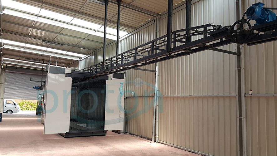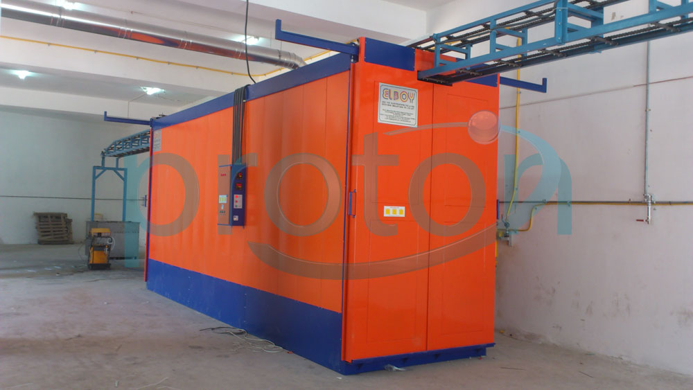 - They are wet paint or electrostatic powder paint curing ovens used in semi-automatic systems.